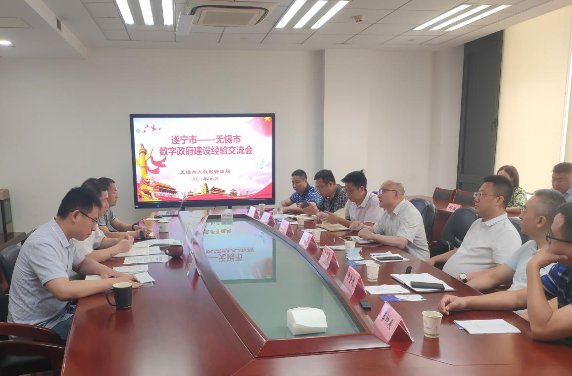 ? ? ? ? 6月8日,考察組前往無錫市大數(shù)據(jù)管理局考察學習,雙方就“公共數(shù)據(jù)管理”進行了專題探討。經(jīng)了解,無錫市大數(shù)據(jù)管理局積極制定出臺《無錫市公共數(shù)據(jù)管理辦法》,總結出“以數(shù)據(jù)治理聯(lián)通數(shù)據(jù)孤島,以數(shù)據(jù)資源化彰顯數(shù)據(jù)價值,以多元參與凝聚治理合力,以全生命周期形成管理閉環(huán)”4大亮點經(jīng)驗,在規(guī)范公共數(shù)據(jù)管理、保障和服務民生、促進經(jīng)濟社會發(fā)展等方面形成了一套行之有效的操作模式。考察組表示,無錫市的成功做法和創(chuàng)新舉措,為數(shù)字遂寧建設提供了寶貴經(jīng)驗,今后將暢通信息渠道,持續(xù)深化交流,奮力推動數(shù)字遂寧建設再上新臺階。